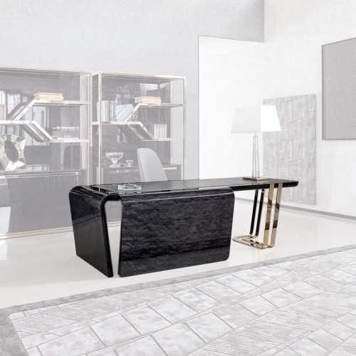 Escritorio presidencial Black Bubinga poliéster cristal oscuro acero dorado