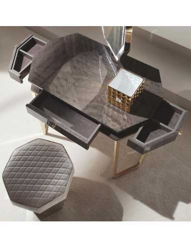 Taburete Infinity madera de caoba makorè cojín de piel o terciopelo