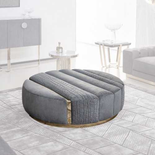 Ottoman redondo tapizado en cuero o terciopelo acero dorado Colección Charisma