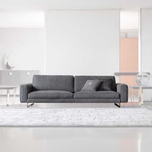 Sofá disponible en piel de primera calidad, piel Nobuck, piel estampada lagarto y tela de terciopelo.